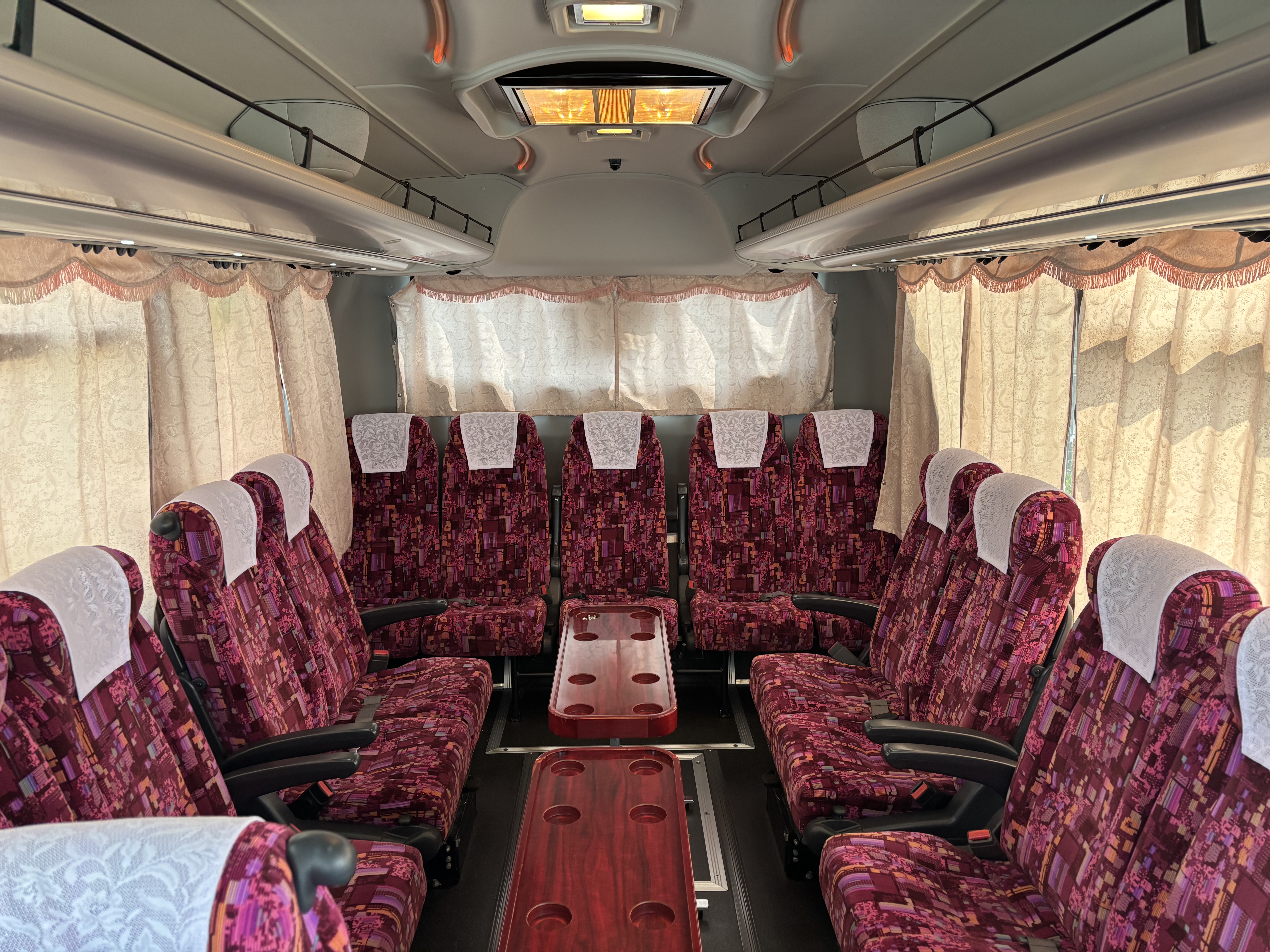 後部サロンレイアウトに対応(要事前相談)。中距離移動や視察・研修にも最適です。